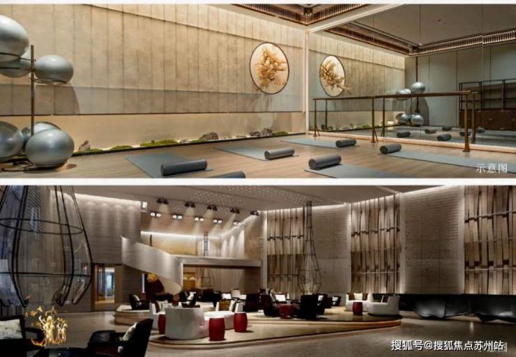 约1400㎡运动会所:设置四季恒温泳池,24小时水循环过滤,颂钵瑜伽空间、高端健身器械等,满足精英阶层对自我管理与生活质感的需求,将生命力体验延伸至各个场景。