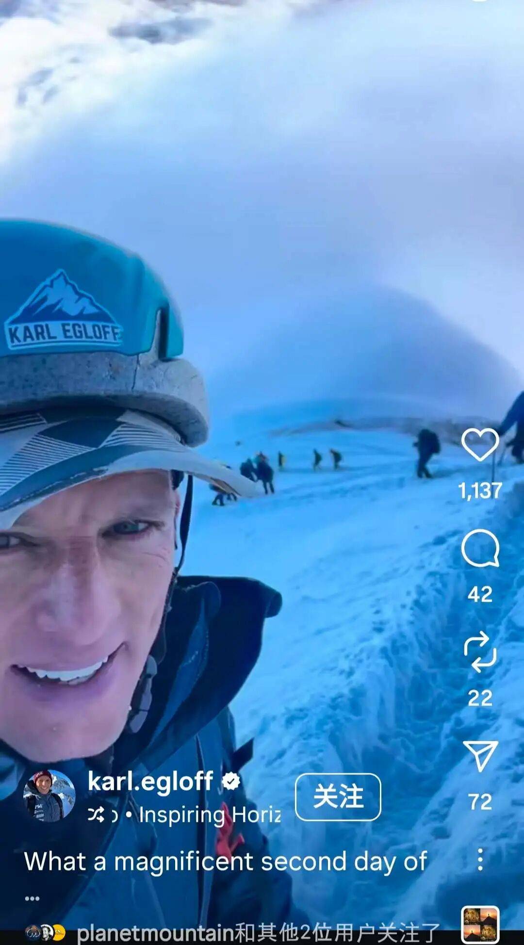 对于44岁的Karl Egloff来说,这座山峰同样有着重要意义,他是Andrews在珠穆朗玛峰不使用辅助氧气创造已知最快攀登用时/FKT的有力竞争者。二人均计划在今年春季重返珠穆朗玛峰。