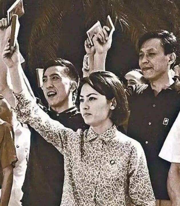而石慧、傅奇二人则依然选择留在香港,而且还是“”革委会的领导者。两人捏着毛的红宝书,参加抗议。